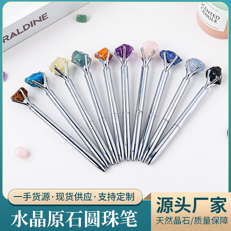 天然水晶原石ペンdiy創意半宝石金属銀色ボールペンサインペン学生事務用具