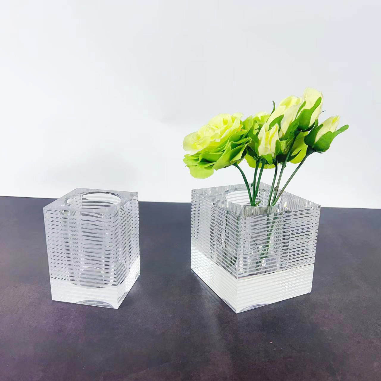 現代のシンプルなヨーロッパ式の軽い豪華な水晶のストライプの筆筒の花器の置物の見本の部屋のビルの売り場の書斎の柔らかい装飾品