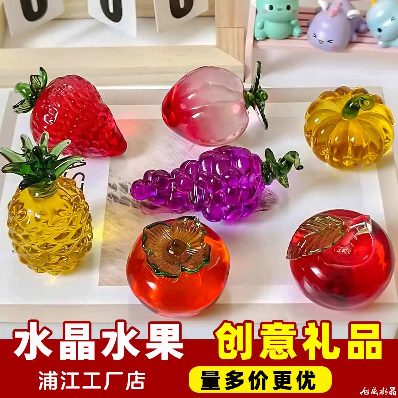 模造瑠璃柿カボチャ桃梨いちごプレゼント家庭装飾鎮紙小置物水晶果物置物