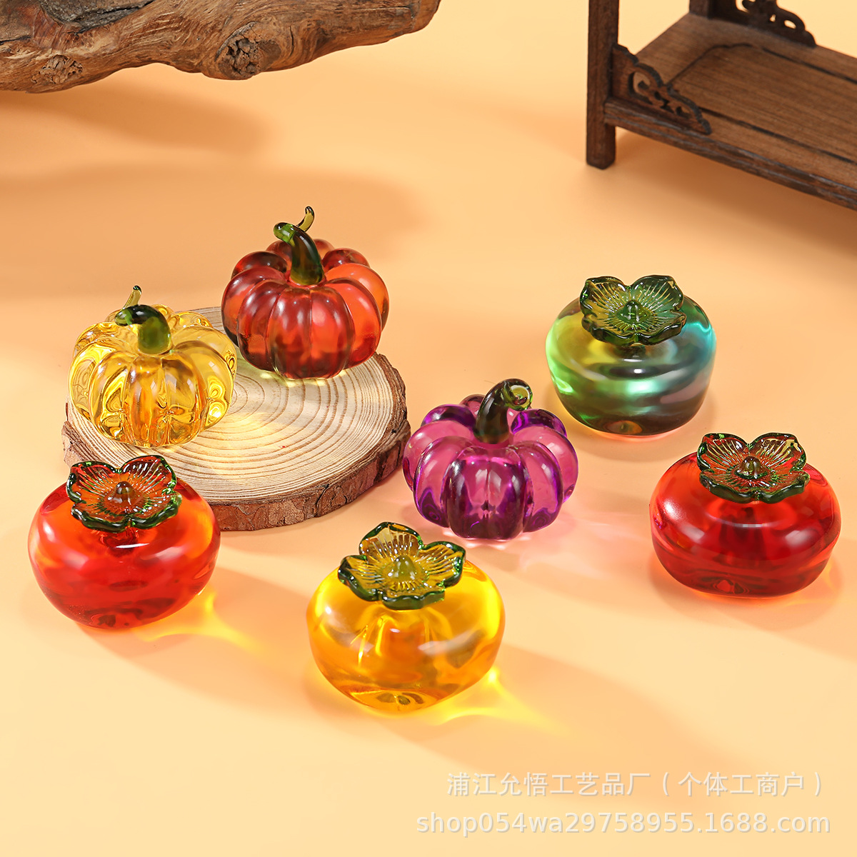 柿柿如意文房四宝クリスタルパンプキン鎮紙、書道用模造フルーツガラス置物の卸売