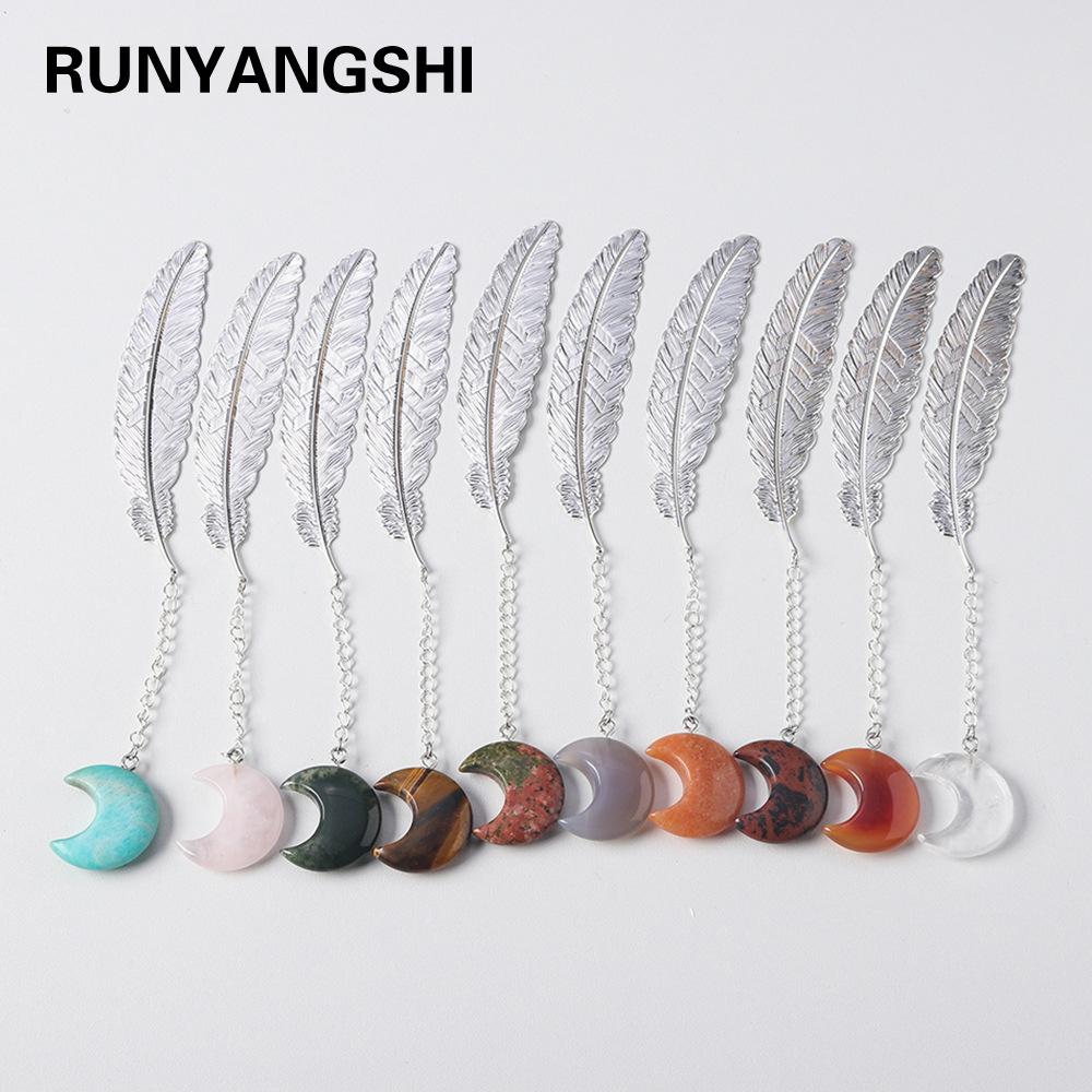 天然水晶銀色の羽の月のしおりのアイデアの贈り物学生の文房具の金属のペンダントのしおりのメーカーの卸売り