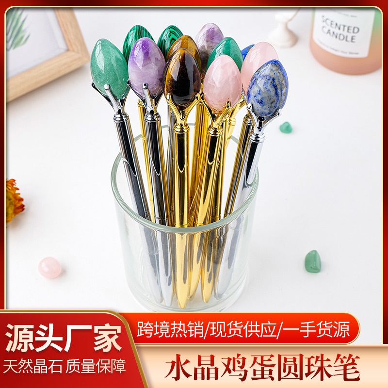 天然水晶の卵のペンの水晶の半宝石の金属のボールペンの学生の創意の贈り物の広告のペンは箱を送ります。