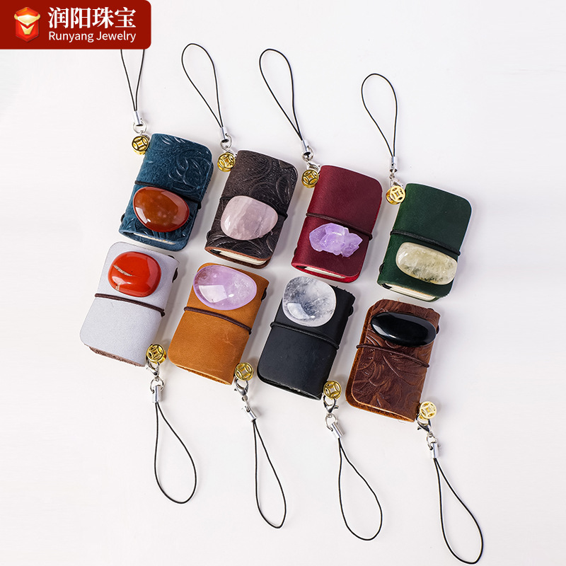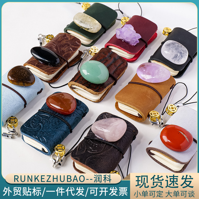 天然水晶原石ミニノート手帳手作りメモ牛革本かわいい旅行日記帳