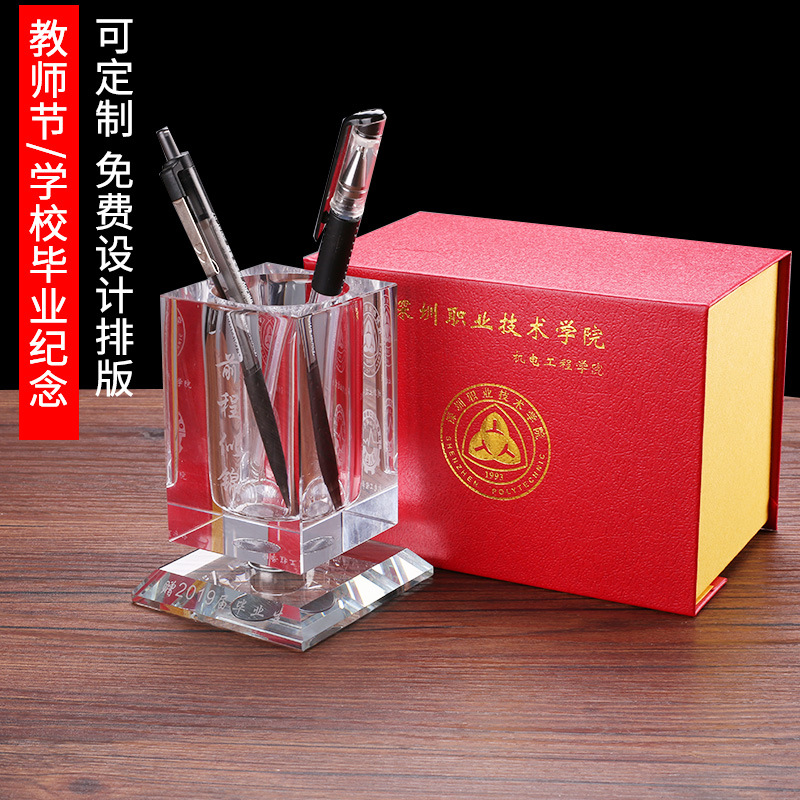 同窓会卒業校慶教師の日に先生の水晶筆筒を送って会社のイベント記念プレゼントを作った
