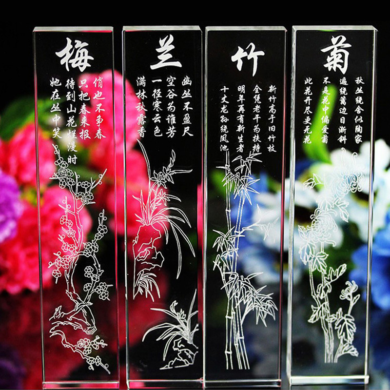 水晶鎮紙梅蘭竹菊水晶工芸品創意教師の日プレゼント卒業して先生に送ります。