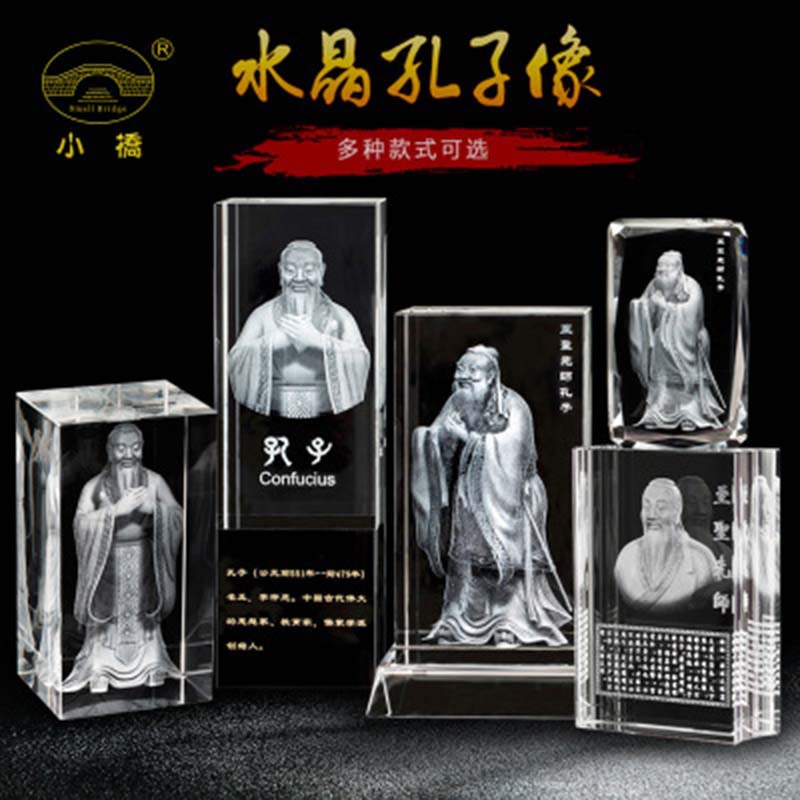 水晶鎮紙鎮尺3dレーザー内彫刻人像教師の日プレゼント孔子記念品置物
