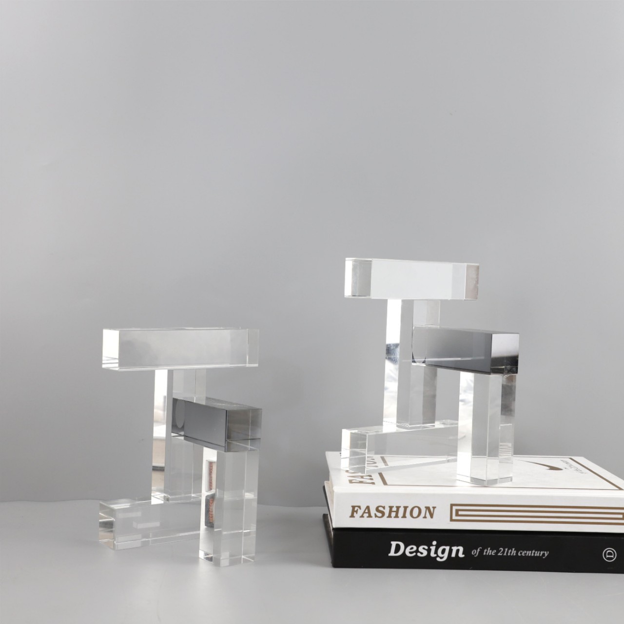 現代的なシンプルな幾何学的な透明な水晶の本の装飾はリビングルームの寝室の売り場の見本の間の家庭の装飾品を並べます。