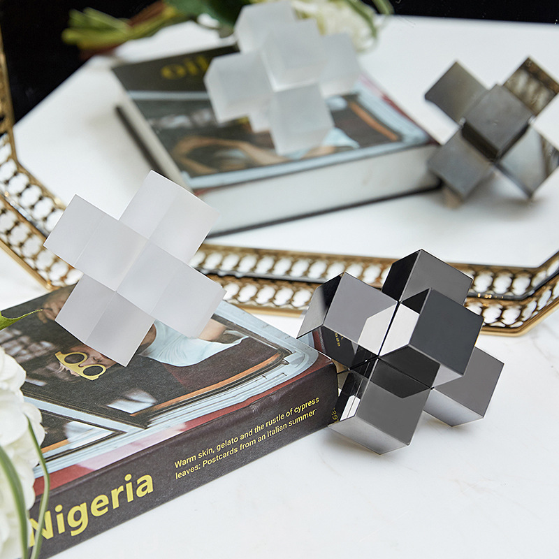 シンプルな現代透明芸術立体幾何学水晶十字鎮紙置物客間書斎装飾品置物