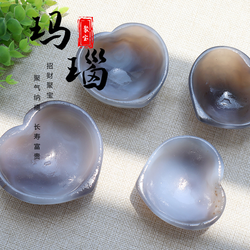 天然水晶瑪瑙石ハート型収納碗デスクトップ灰皿置物茶卓装飾消磁筆洗鎮紙