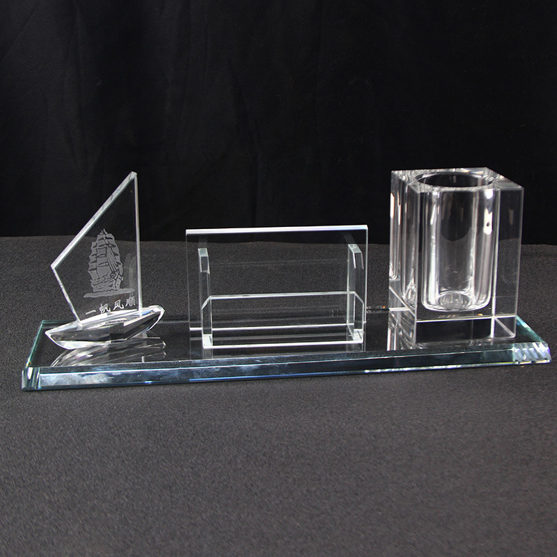 クリエイティブカラークリスタル筆筒名刺挟み時計オフィス置物三点セットビジネスイベント記念プレゼント