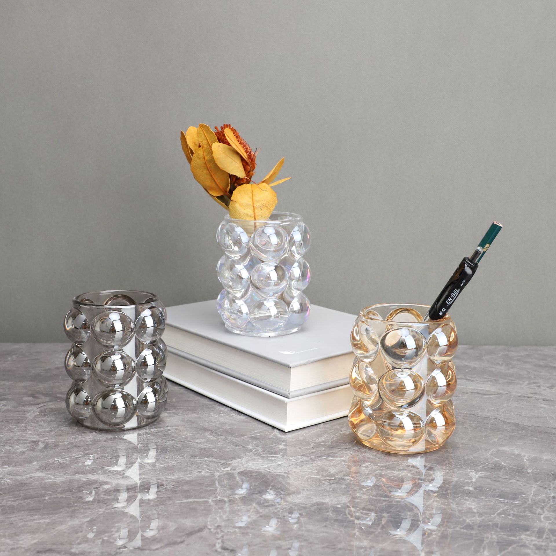 水晶の筆筒の製作は実用的なアイデアを飾っています。