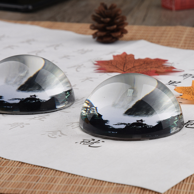浦江水晶ガラス半球鎮紙レトロ半球鎮紙山水個性創意工芸置物メーカー卸売り