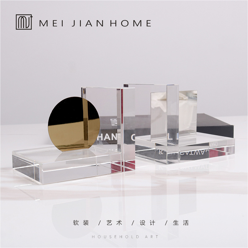ヨーロッパのライト高級パーソナライズされた幾何学的なクリスタルメタル小さな人形ブックエンドブックスタンド装飾品本棚玄関ホール家の装飾