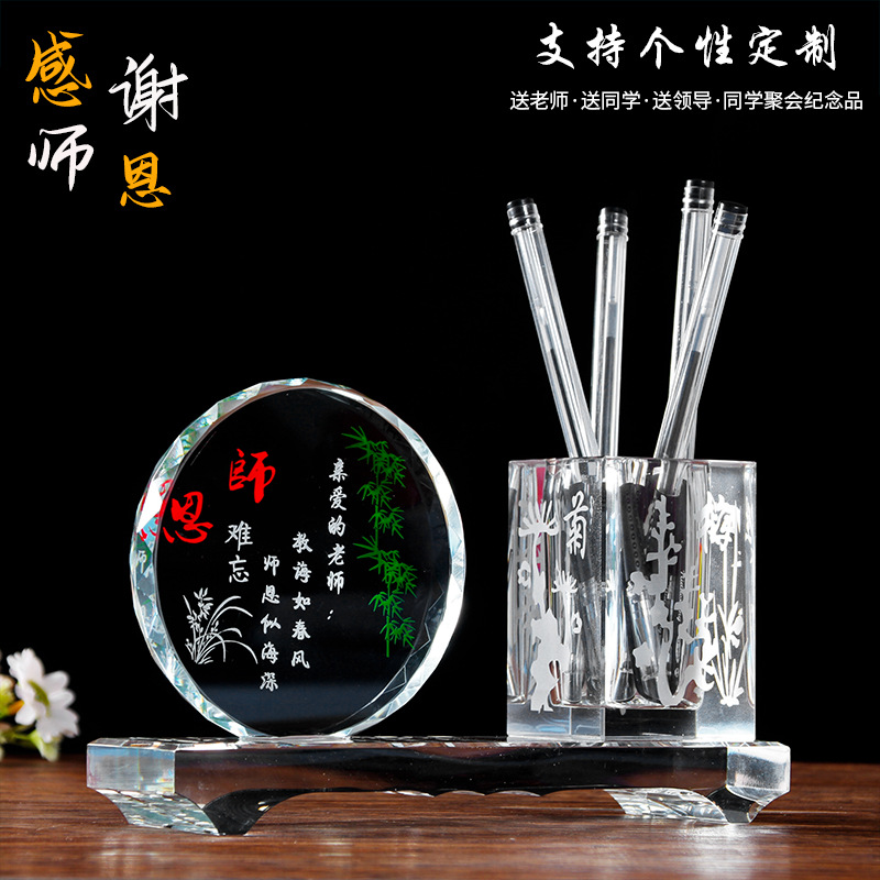 水晶筆筒卒業シーズンに先生へのプレゼント疫病対策記念品ビジネスデスクの置物