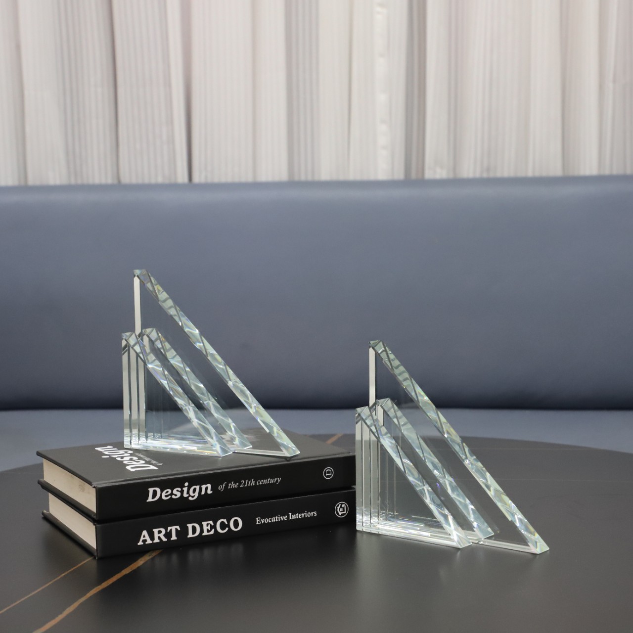 北欧の軽い豪華な水晶の三角形の本の枠のデスクトップの置物の書斎の客間のテレビの戸棚の見本の部屋の家庭の装飾品