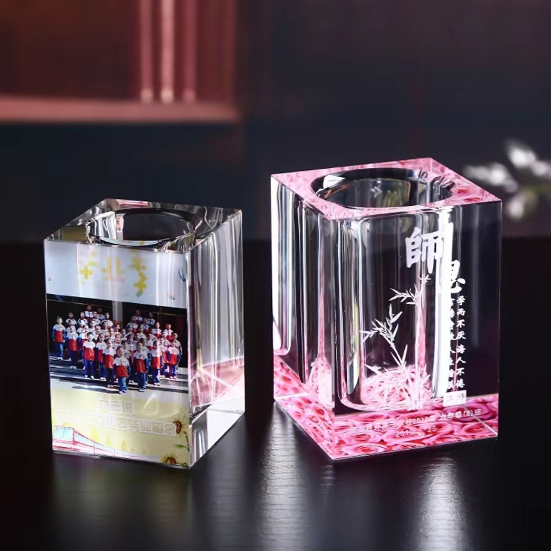 写真を彫ることができる水晶筆筒プレゼント幼稚園実用同級生卒業パーティークラス記念品