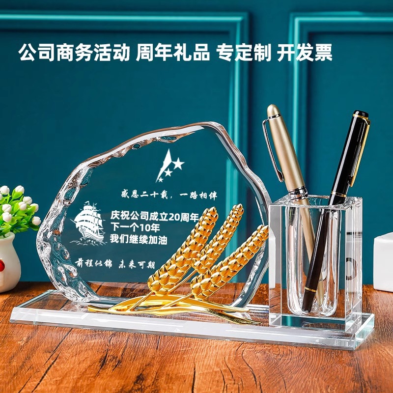 実用会社周年慶ビジネスギフトロゴは、お客様の従業員にプレゼントの筆筒トロフィー記念品をプレゼントします