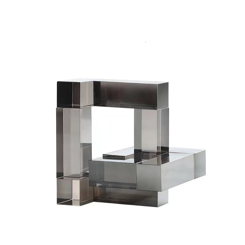 現代のシンプルな煙の灰色の幾何学的な形の水晶の置物のサンプルの部屋の客間の水晶の書体