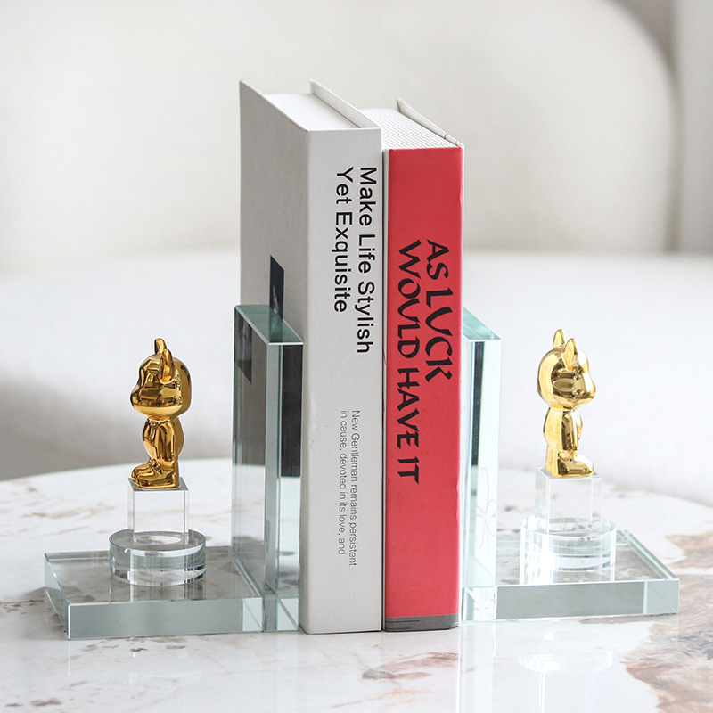 モダンでシンプルなモデルハウスの幾何学的なクロムカラーのクリスタルガラスブックエンド、オフィスや書斎の本棚の装飾品
