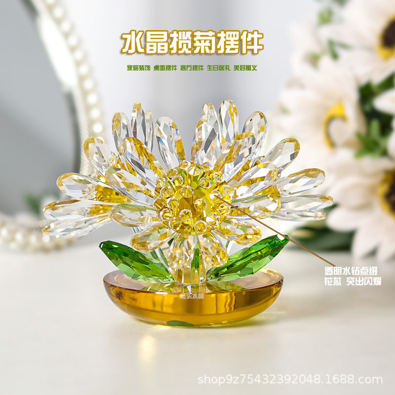 水晶の花の置物の軽い豪華な水晶の贈り物の鎮紙の植木鉢の植物の形の家庭のデスクトップの装飾の車の花の置物