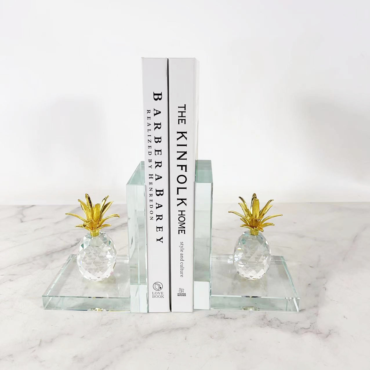 現代のシンプルな水晶パイナップルの本は本棚の本棚の書斎に本を置いてアイデアを飾って芸術品を飾ります。