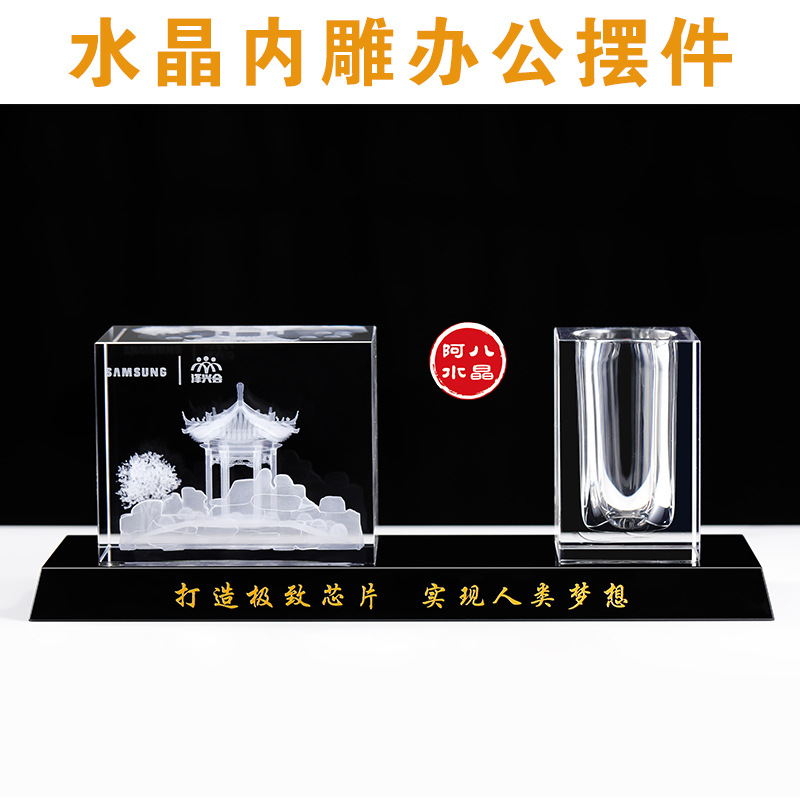 水晶彩印屏風内彫刻筆立て卒業生記念品学校会社祝典パーティー同級生記念プレゼント