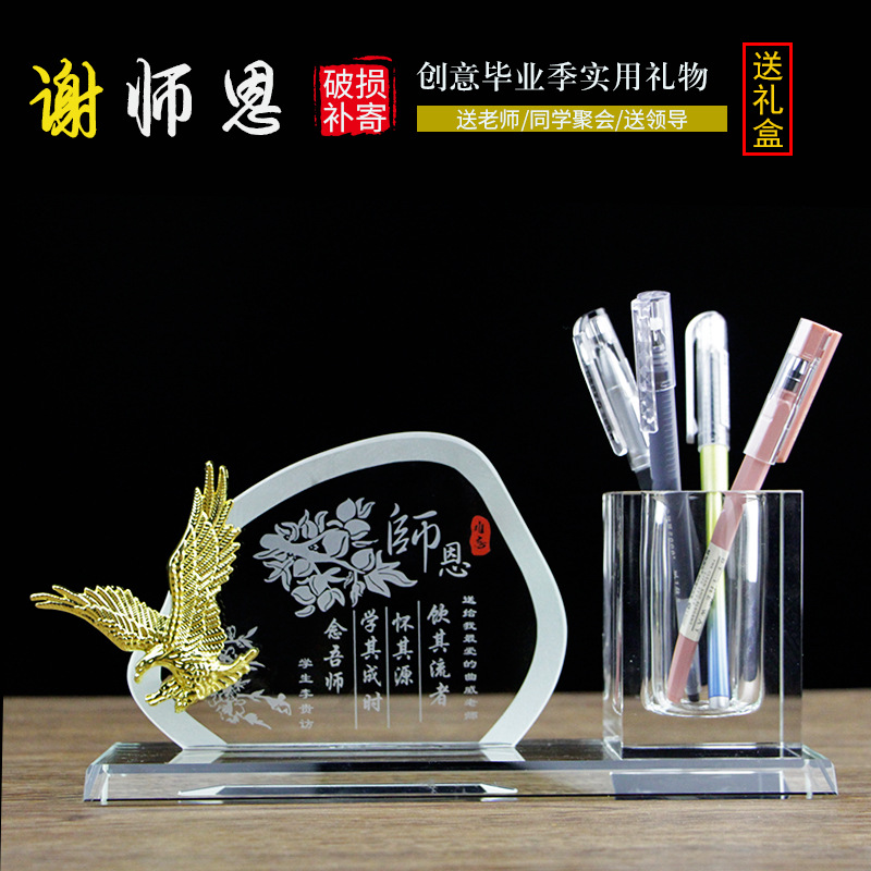 創意高級水晶筆筒置物感謝オーダーメイド教師の日プレゼント水晶彫刻先生卒業記念