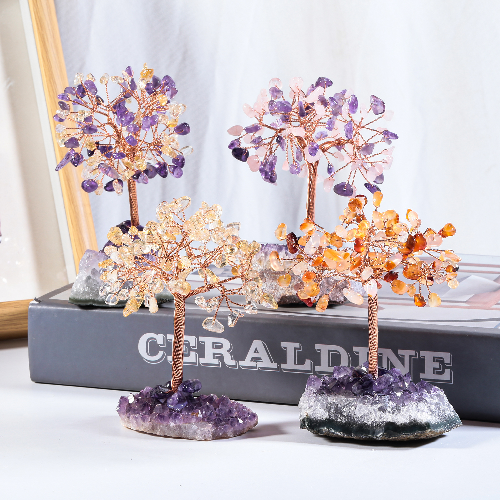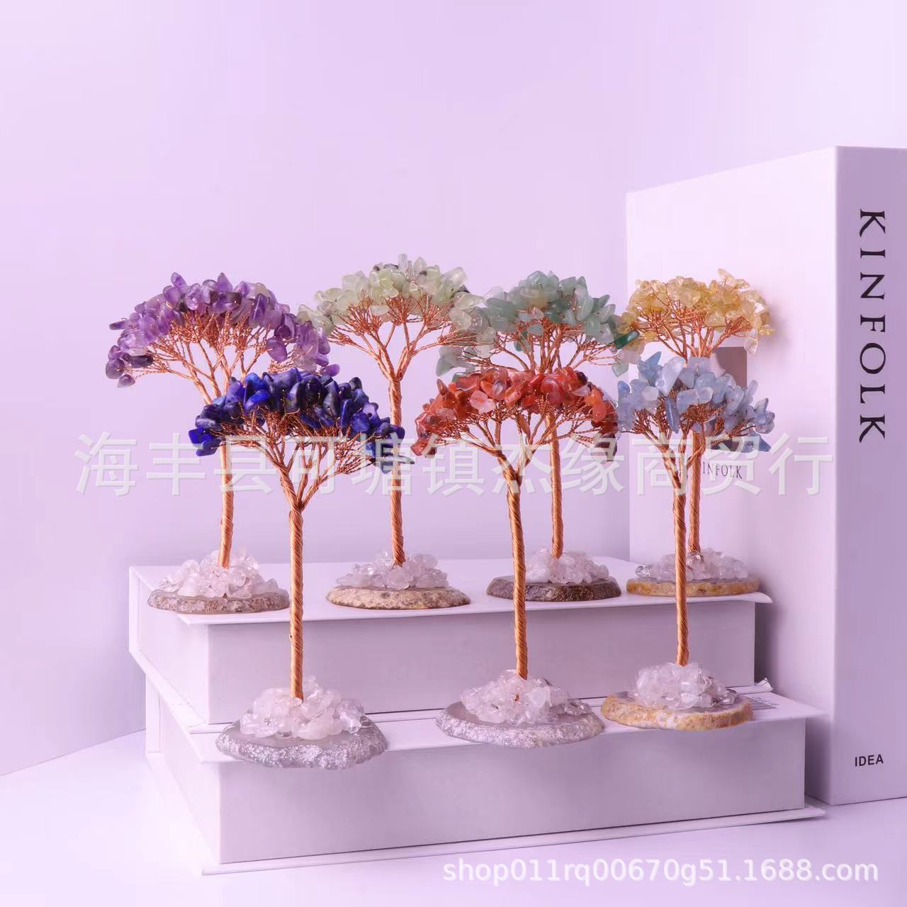 天然水晶宝石桃花樹置物プレゼント原石ホームアクセサリーかわいい工芸品招財樹クロスボーダー