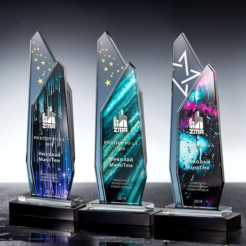 ウォールナットクリスタルトロフィー スプライス無垢材発光トロフィー 会社年次総会賞 チャンピオン 優秀社員記念