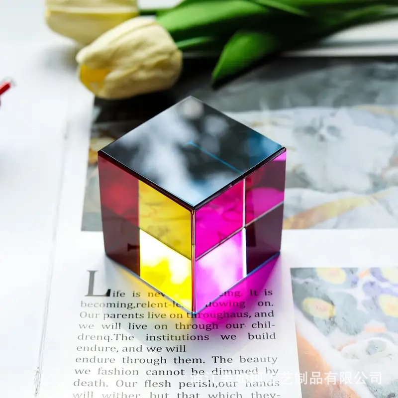 太陽の太陽の光の捕手のカラーの水晶のルービックキューブの正方形の水晶のピラミッドのプリズムのルービックキューブのデスクトップは家庭を飾ります。