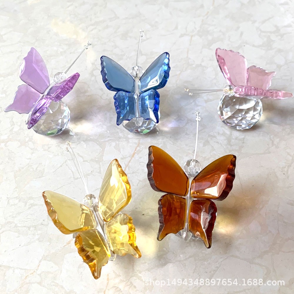 国境を越えて人気のクリスタルガラスの蝶の置物、子供へのプレゼントやカウンターの装飾に最適