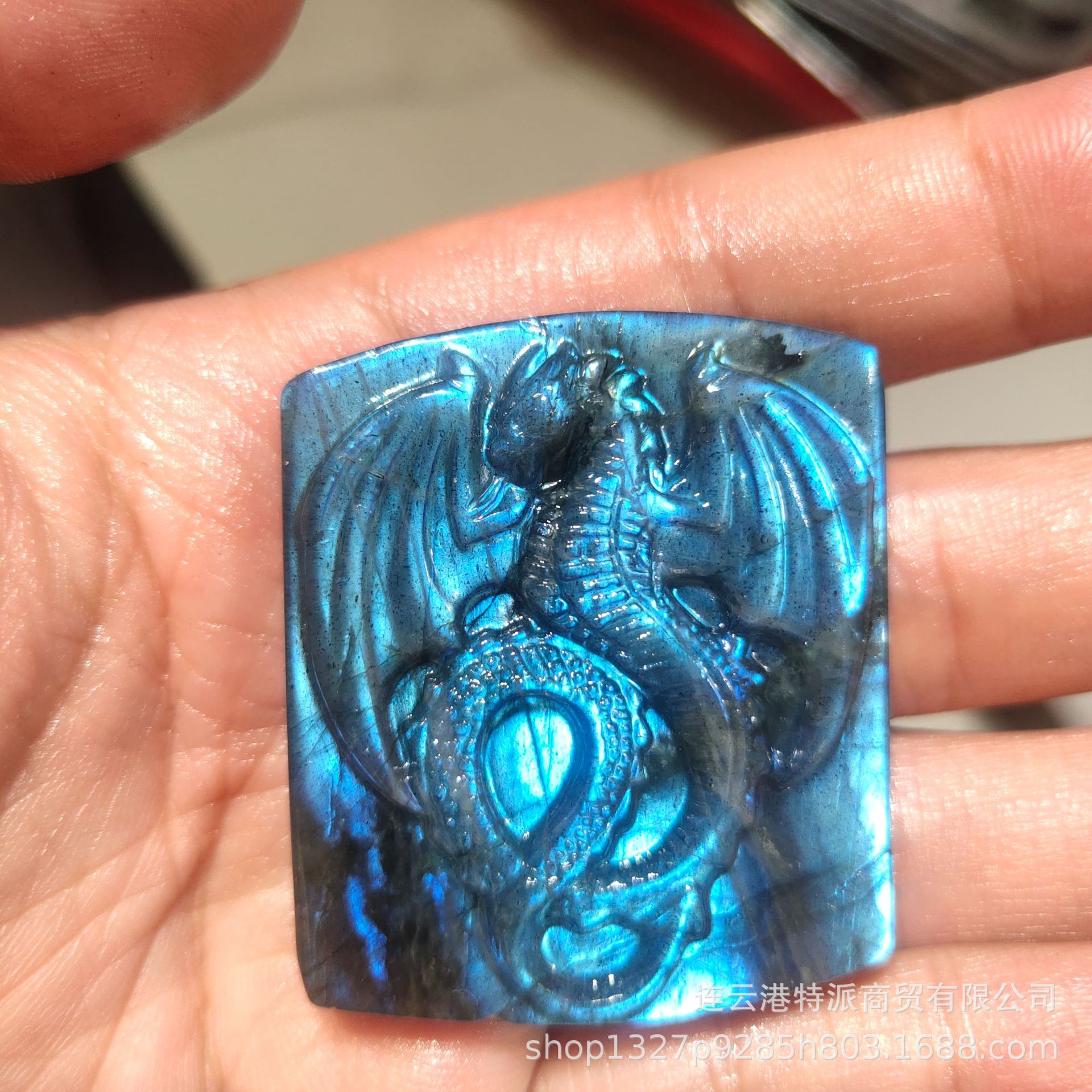 天然長石原石水晶彫刻飛龍欧米装飾瞑想水晶置物ペンダント