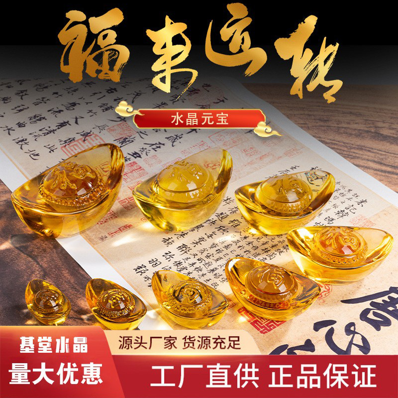 水晶の福の字の元宝の置物の卸売りの黄金の元宝の家の開業の結婚祝いの装飾の贈り物のガラスのアクセサリの客間