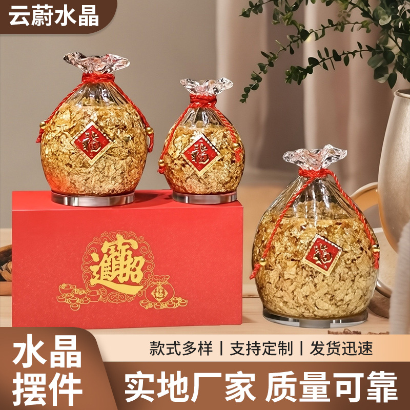 水晶の金箔の福袋の置物のリンゴの置物の元宝の開業の贈り物の客間の装飾品の中国式の家庭の置物