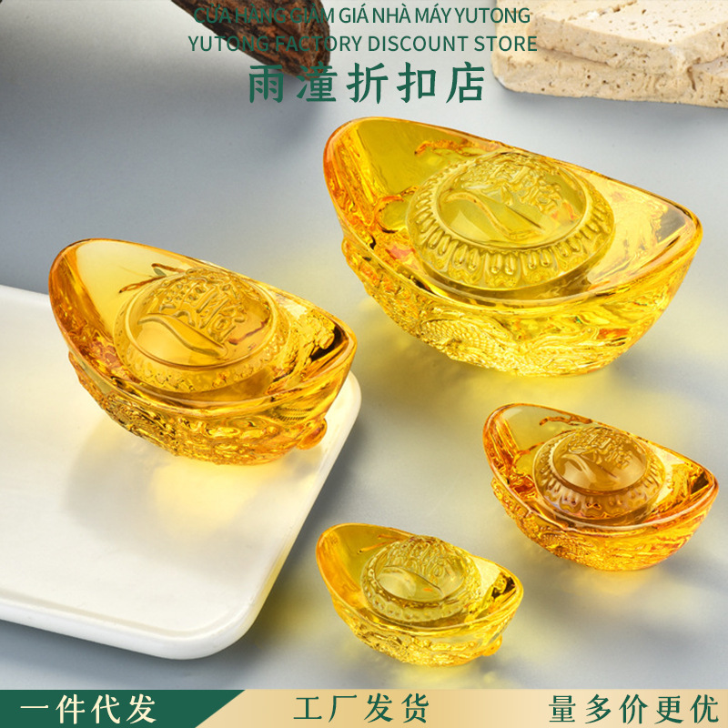 双龍戯珠瑠璃招財黄金元宝開業喬遷聚宝盆装飾品水晶龍紋元宝置物