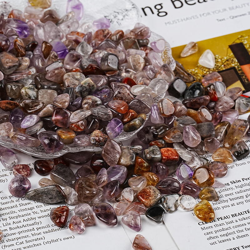 良質天然七色水晶石水晶砕石七色宝石供仏修曼が宝石を隠している金魚鉢景石