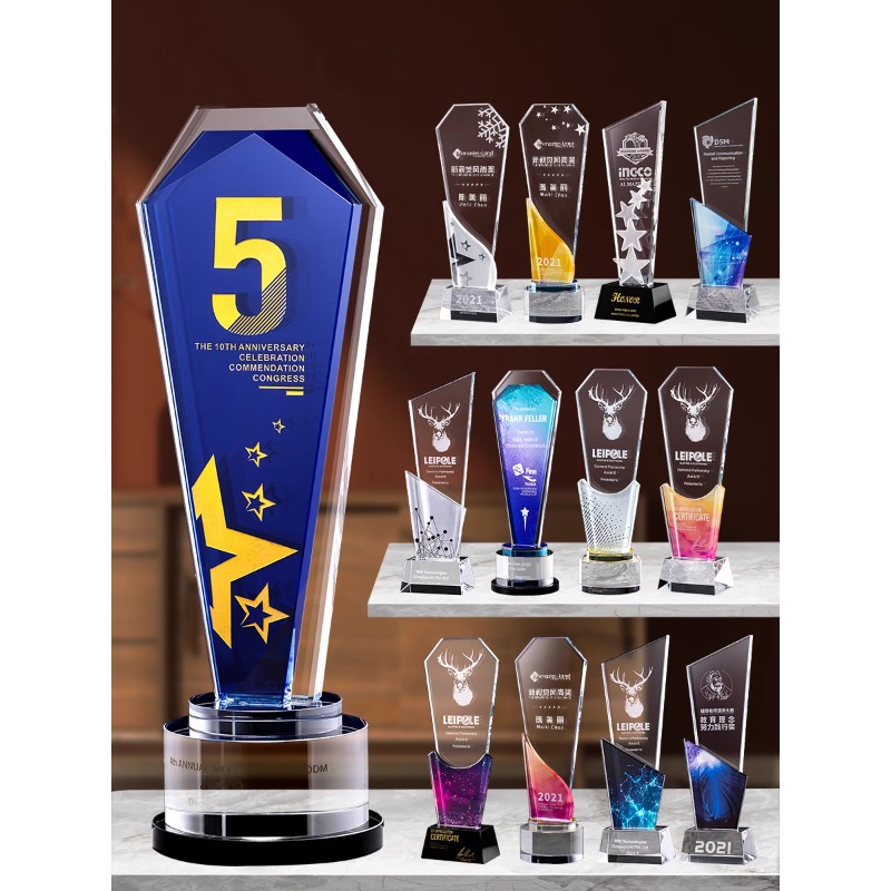 水晶のトロフィーは創意瑠璃の形をオーダーして会社のlogoの記念品をカスタマイズしてサンプルを作って作ります。