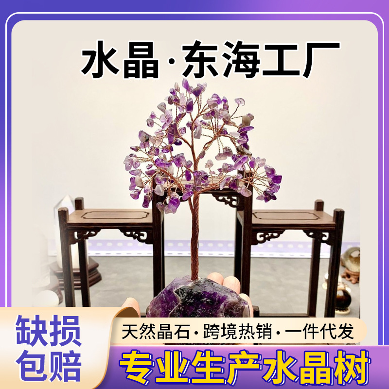 メーカー卸売り天然紫水晶発財樹置物原石台座家庭で人気のあるデスクトップの酒場車載クロスボーダー