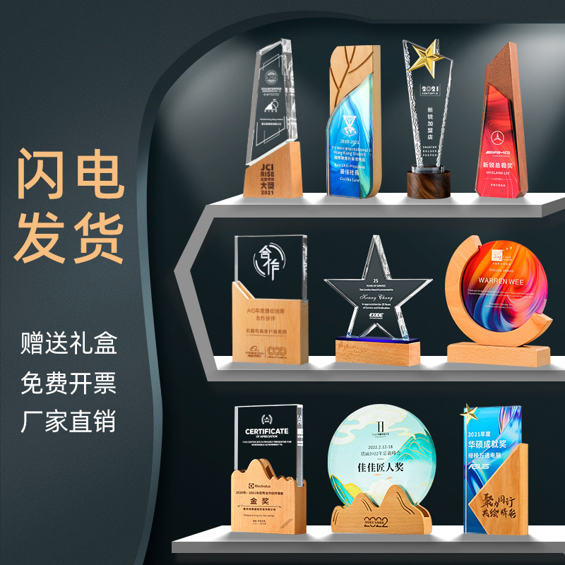 クリスタルトロフィーのオーダーメイドの彫刻実木創意優秀社員授賞記念年会五角星メダル制作