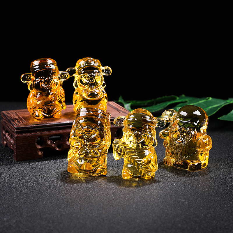五方財神のガラス工芸品、家庭用装飾品、オフィスギフト、福禄寿喜財のクリスタル元宝置物、イエロークリスタル