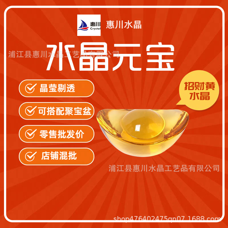 卸売り中国式黄水晶小元宝鴻運置物金元宝小型水晶装飾工芸品小元宝