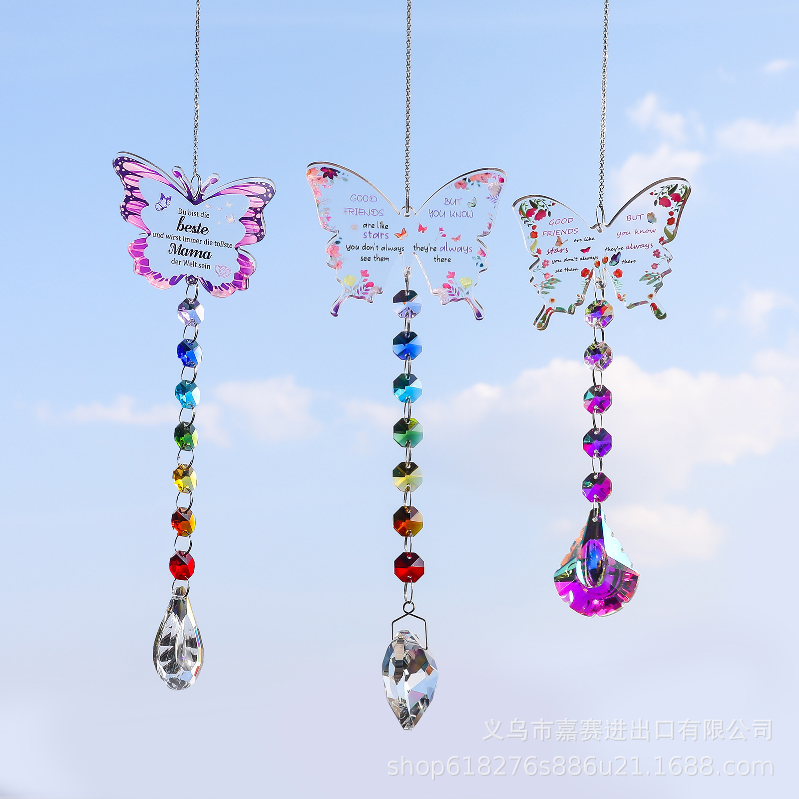 日光捕手桃心ペンダント風鈴ストラップ動物記念用品アクリル蝶クロスボーダー