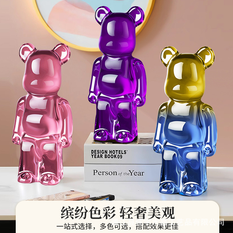 軽豪華水晶暴力熊積み木熊置物客間ins北欧ソフト装飾潮流公仔家庭プレゼント