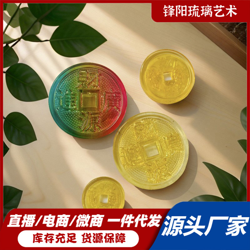 瑠璃五帝銭乾隆なかば車載ホーム装飾招財古銅銭贈答品黄水晶硬貨置物