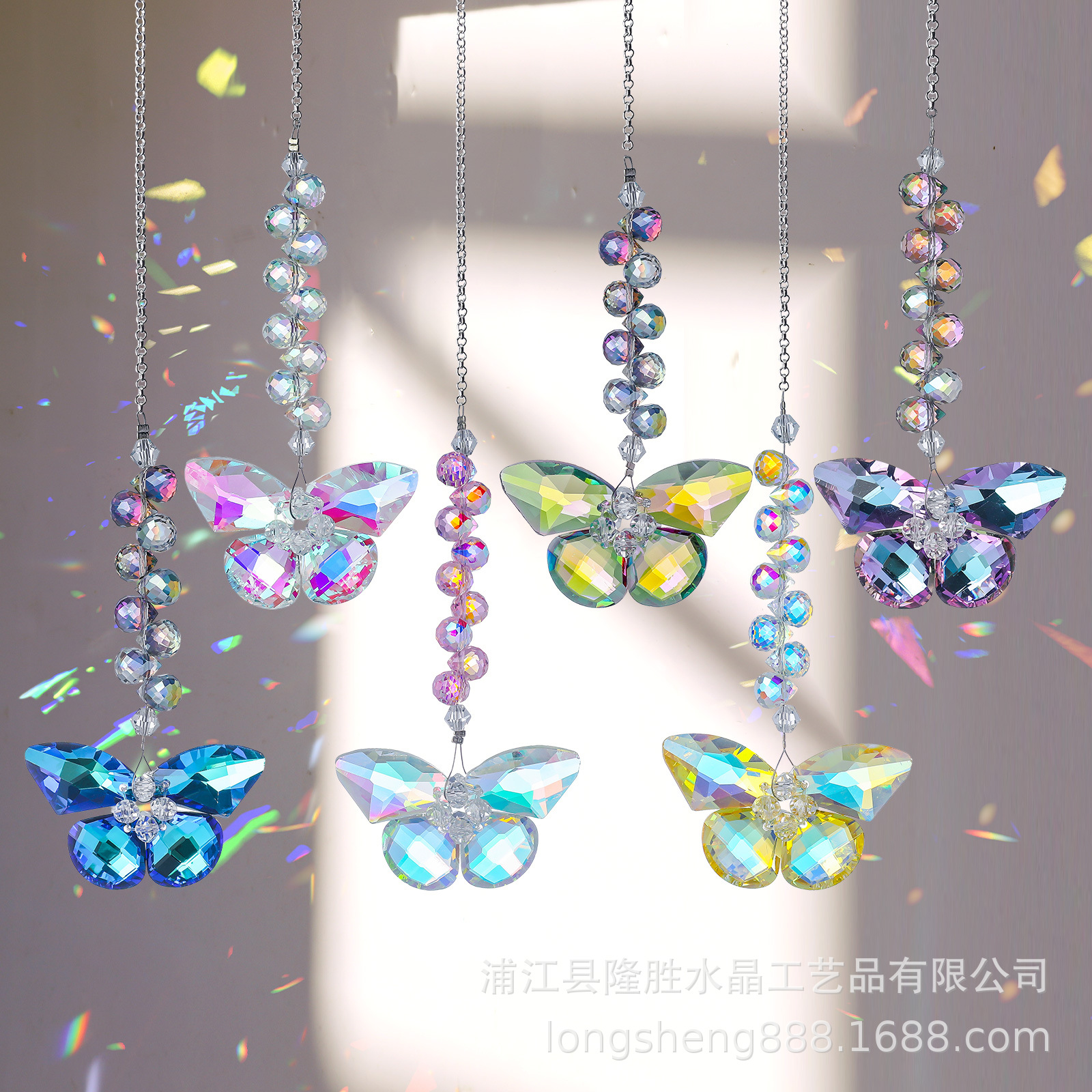 手作りのカラフルなクリスタル蝶ペンダント、車のペンダント、DIY ハンドビーズ、クロスボーダーサプライ