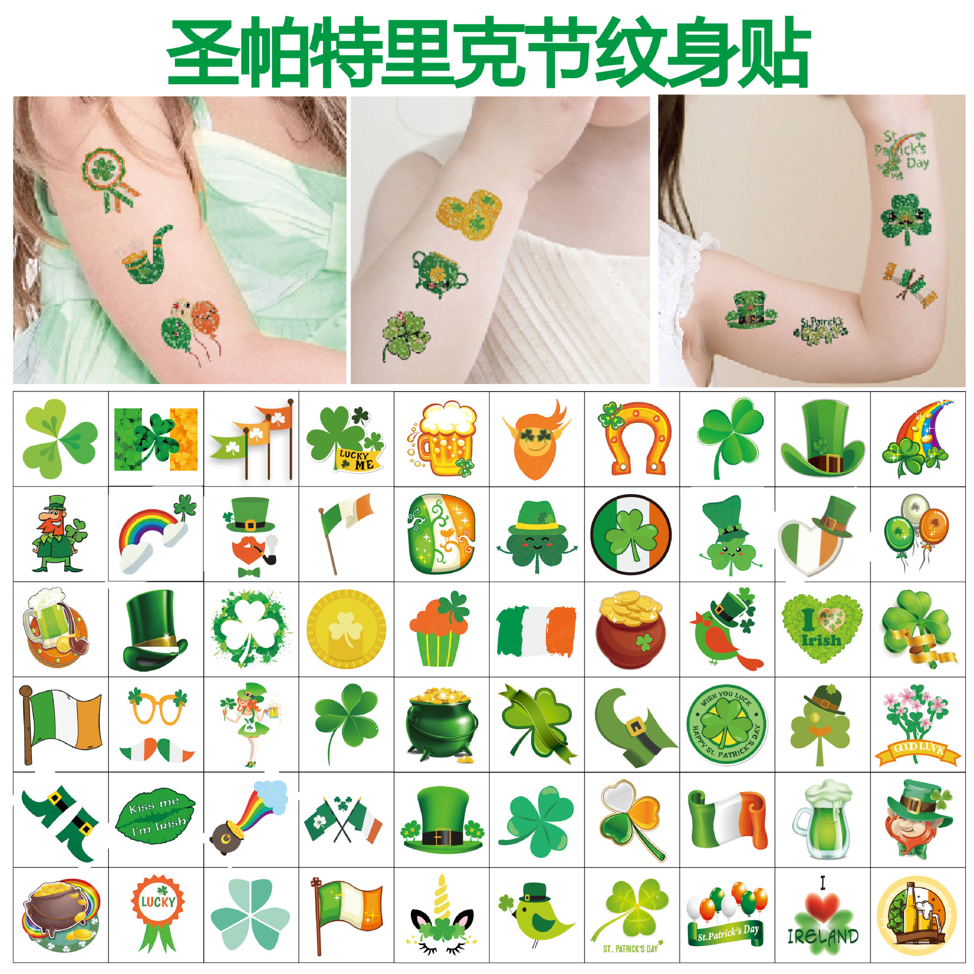 新しい国境を越えた聖パトリックの日の紋章はパーティーの緑の帽子のクローバーのアイルランドの漫画を貼ってかわいいです。