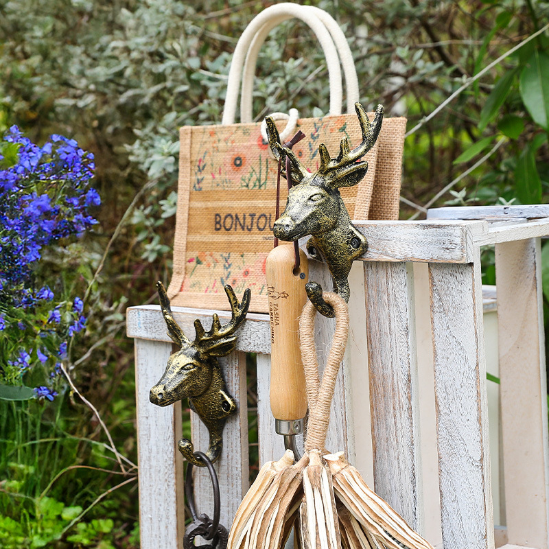 ヨーロッパのレトロな鋳鉄の鹿の頭は壁掛けの試着室の壁面の家のドアの後でキーフックのハンガーを飾ります。