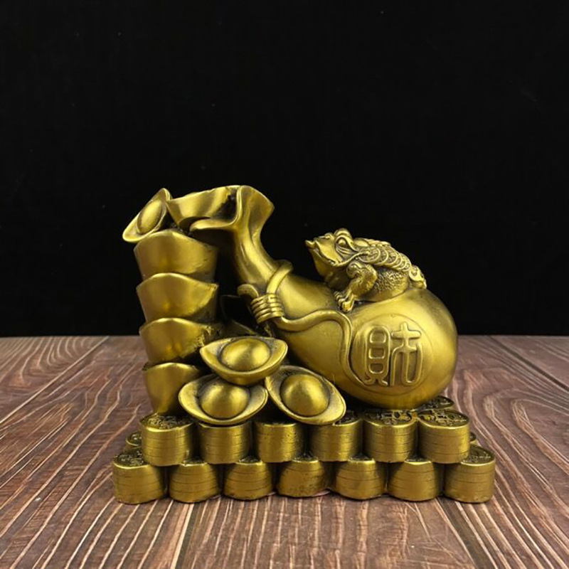 セイコーの黄銅の金のヒキガエルのお金の元宝の財産の袋の家の客間は純銅のお金の袋の風水を飾って工芸品を飾ります。