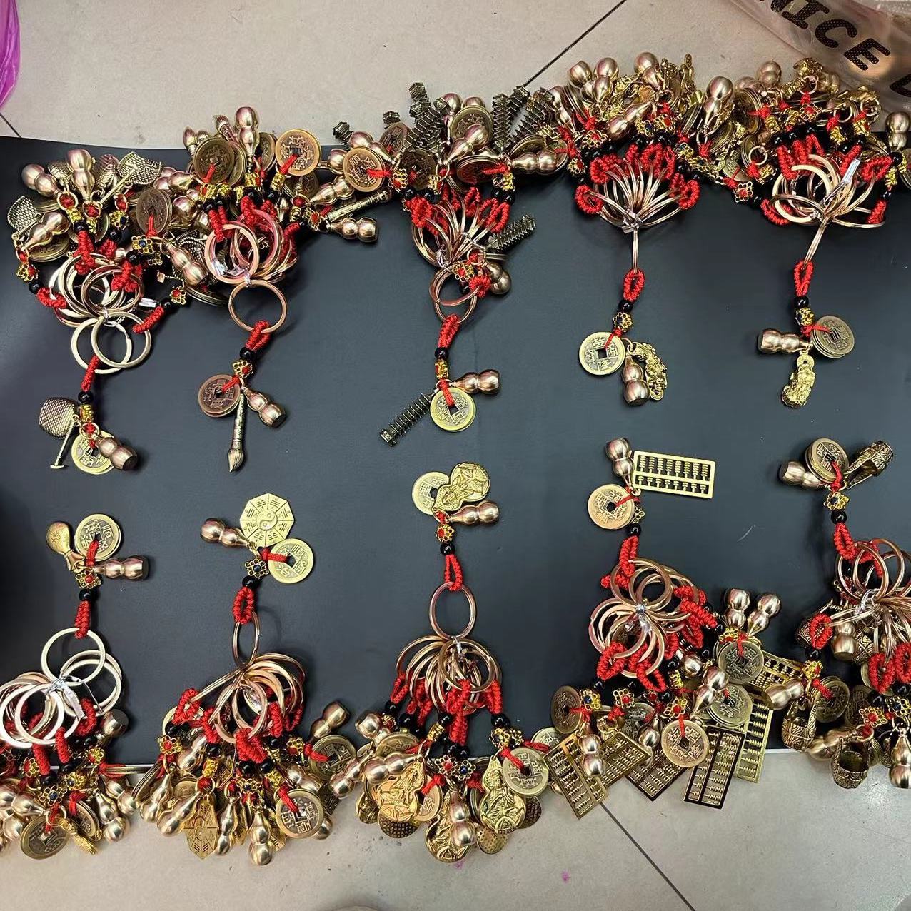 露店は銅状元筆文昌塔皮休紅縄真鍮中空ひょうたん五帝銭三点セットのキーホルダーを模倣している