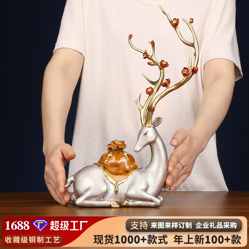 色とりどりの銅の梅の花の鹿の銭袋の鹿の家庭の客間のテレビの棚の新しい中国式の開業する贈り物の置物
